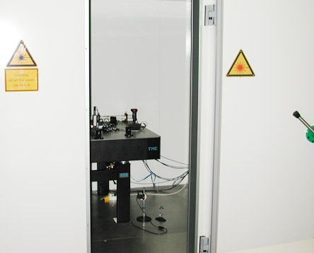 In cooperation with the Ecole Polytechnique Fédérale de Lausanne (EPFL, Switzerland) and aixACCT Systems (Aachen), a double-beam laser interferometer was build during the cause of year 2001 (Figure 3). The instrument is seated on an air cushioned optical table positioned on ground level of the building and surrounded by a passive thermal chamber (Figure 4). Improvements were made in order to achieve shorter measurement times and easier alignment.