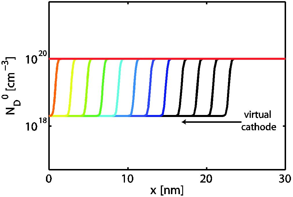 Figure 2: Different dopant profiles emulating the propagation of the virtual cathode