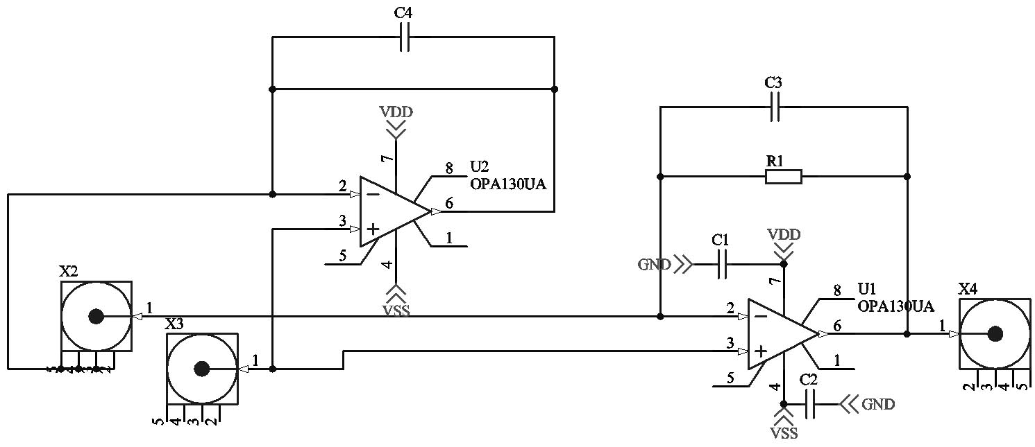 Figure 9: Transimpedance amplifier for current to voltage conversion.