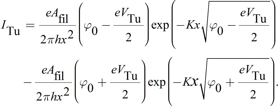 Here j0 is the exchange current density, α the charge transfer coefficient and η the overpotential. The tunneling current ITu can be calculated according to Simmons as