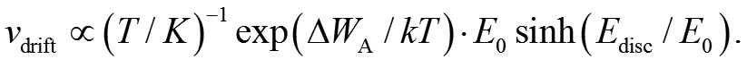 Here, the activation energy ΔWA = 1.01 eV, the characteristic field E0 = 1 MV/cm, and Edisc = Vdisc/ldisc. Hence, the SET time depends on the volt drop across the disc Vdisc and the mean disc temperature T. These quantities are extracted from numerical FEM simulations of the field and temperature distribution with the VCM cell. For this, the heat equation is solved for along with the continuity equation [3].